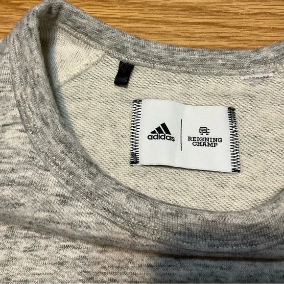 Step up your casual wear with the Adidas REIGNING CHAMP Long Sleeve Heather Grey Crew Knit Sweatshirt. A true collaboration piece, it merges the iconic Adidas style with the laid-back comfort of Reigning Champ. Designed for the modern man, this sweatshirt comes in a versatile heather grey colorway that pairs effortlessly with any outfit, making it a must-have for your wardrobe.Crafted from 100% cotton, this sweatshirt ensures breathable comfort and a soft feel against the skin. It features a classic crew neckline and long sleeves perfect for the transitional weather of fall, spring, and winter. Whether you're hitting the gym or just out for a casual day, the athletic fit and knit fabric offer a relaxed yet tailored look that's equally suitable for any activity.