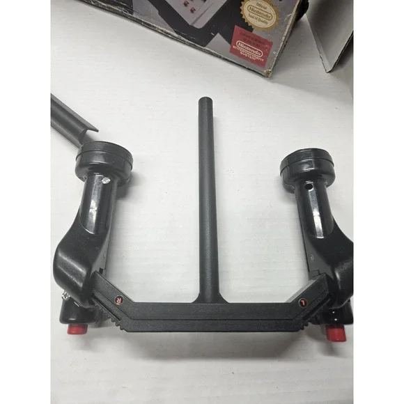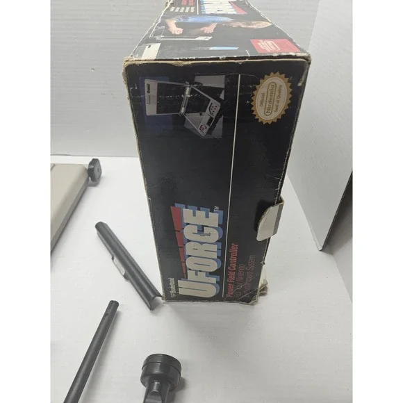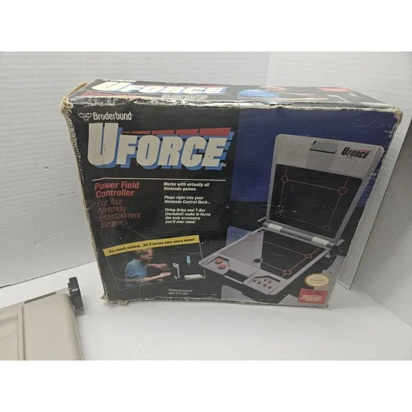 The Broderbund U Force Power Field Controller for the Nintendo NES is a unique controller that utilizes motion-sensing technology to interact with compatible games on the console. The wired controller is specifically designed for the Nintendo NES platform and is compatible with both games and the console itself. This controller by Broderbund offers a different gaming experience compared to traditional controllers, allowing players to physically interact with the games through motion controls. It is in great condition and comes complete with all necessary components for use.