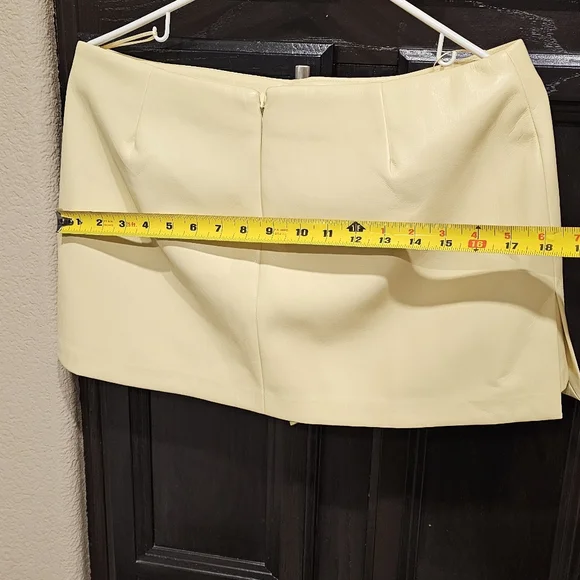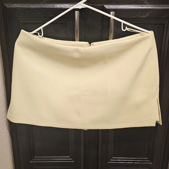 This cream mini pencil skirt is perfect for cocktail events, offering a sleek and sophisticated look. Its fitted silhouette and clean design make it a versatile addition to any wardrobe. The subtle texture of the fabric adds a touch of elegance to this stylish piece. Brand new with tags and Never worn.