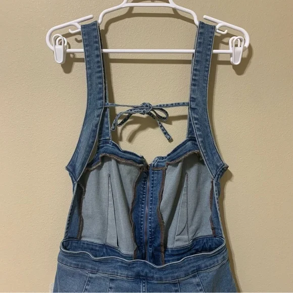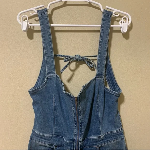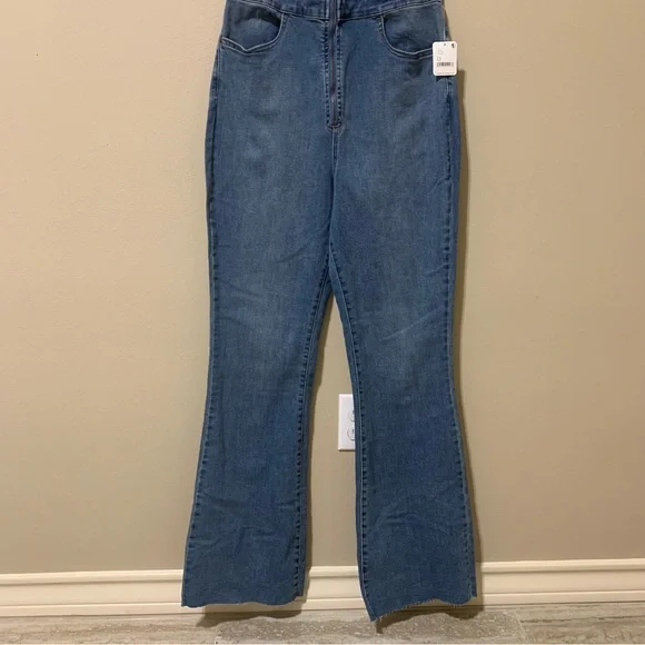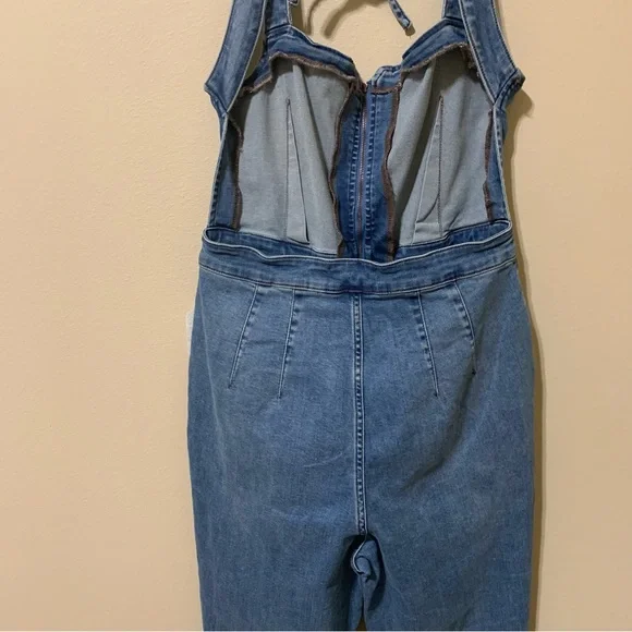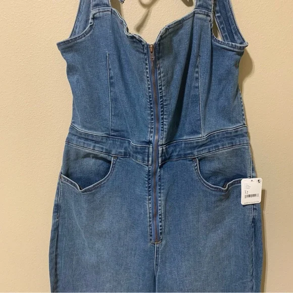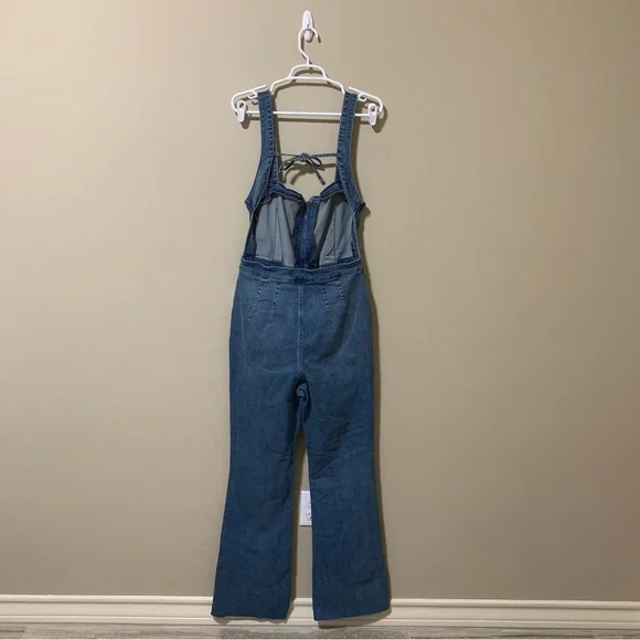 Free People We The Free Curvy 2nd Avenue One-Piece Women's Jumpsuit-Size 12-Cerulean-Square Neck-Zip-Front Silhouette-Kick-Flare Leg Design-Slim through the Thigh-Open Tie-Back-Side Pockets-Approximate Measurements on a Flat Surface:Chest/Bust (Pit to Pit): 19”Length (Shoulder to Waist): 17.5”SleevelessWaist: 31” (Slight Stretch)Rise: 13”Inseam: 32”-93% Cotton/6% Polyester/1% Elastane-NWT