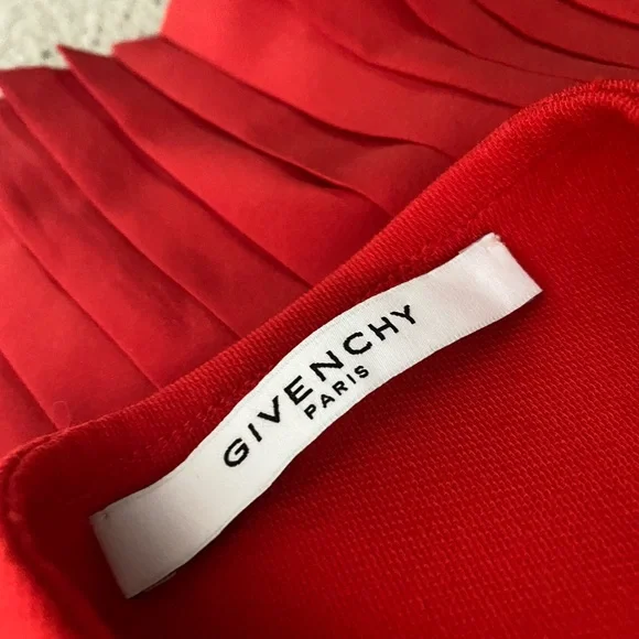 The Givenchy Wool Skirt in size EU 42 is a stylish and elegant piece perfect for the winter, fall, or spring seasons. Made of red wool with a solid pattern, this knee-length A-line skirt features a zip closure and should be dry cleaned only. The skirt is designed for regular size women and showcases the luxury brand Givenchy, making it a chic and versatile addition to any wardrobe.