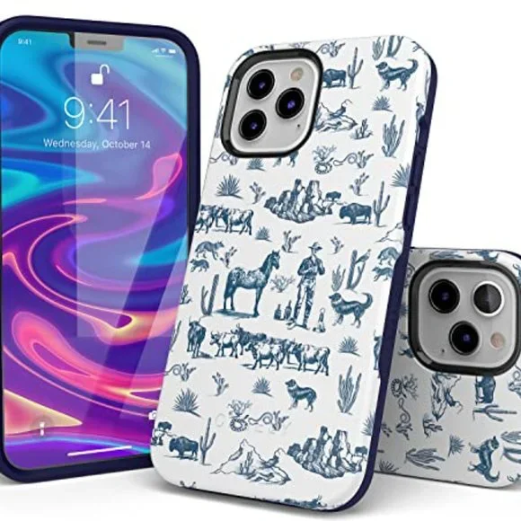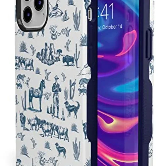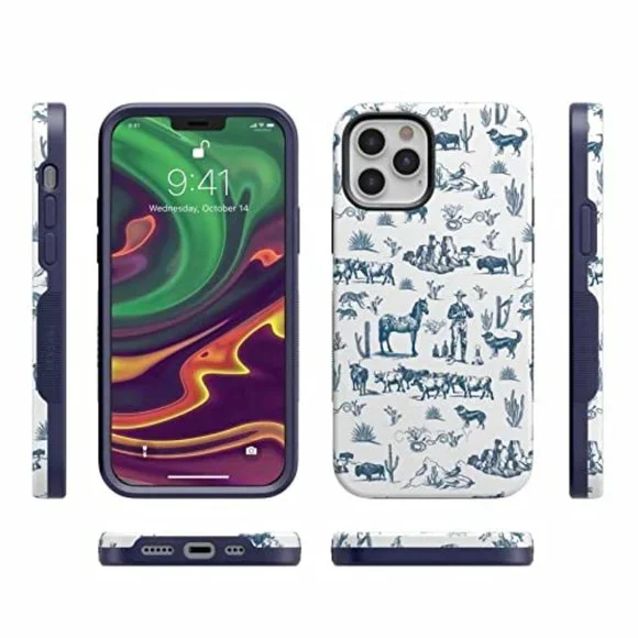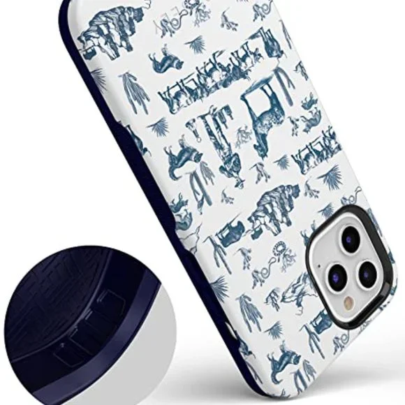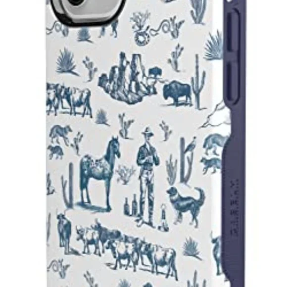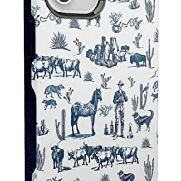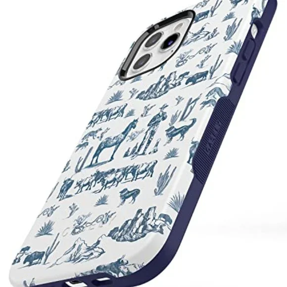 The Wild West Adventure Desert print is for those who love to let their hair down but look cute doing it! With a soft white base and western-themed characters standing out in cool blue, it balances both a thrill for adventure and a casual attitude.This eye-catching yet serene rodeo pattern features a rustic design that is guaranteed to make your phone stand out in a crowd. It's a beautiful and unique accessory to add to any phone and a perfect way to show your wild side without compromising p