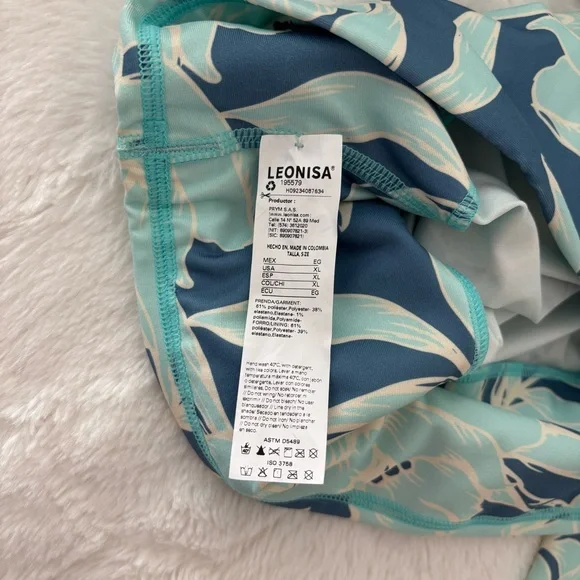 *Leonisa*Eco-Friendly Graphic Active Moderate Shaper Legging*Color: Blue*Size: XL *Moderate compression floral leggings made out of 3 recycled plastic bottles, which were transformed into resins and then into threads. This legging is perfect for high-impact, speed, strength, or resistence workouts. Quick-dry. Double-layered, high-rise waistband. Tummy control. Allow flexibility and freedom of motion. Ideal for high impact activities, cardio, or weight training.*Good used condition*Approximate measurements lying flat: armpit to armpit 14 inches across, rise 11 inches, inseam 27 inches
