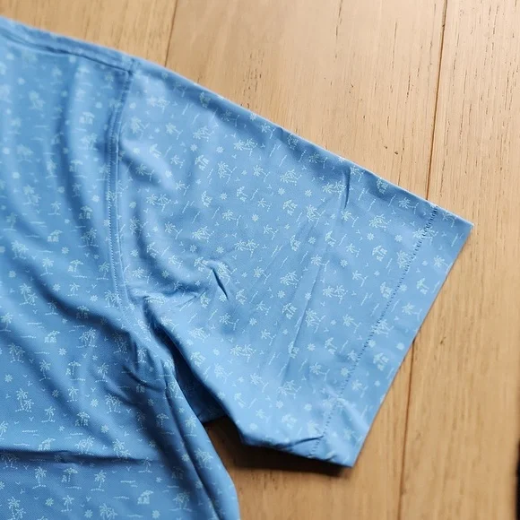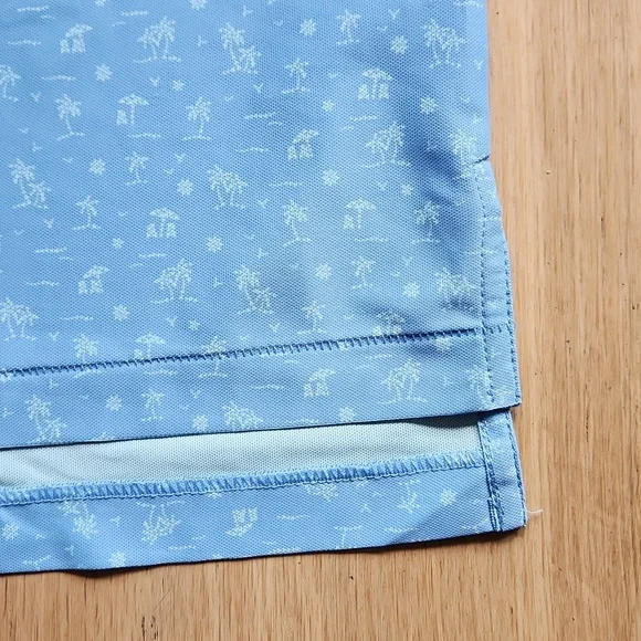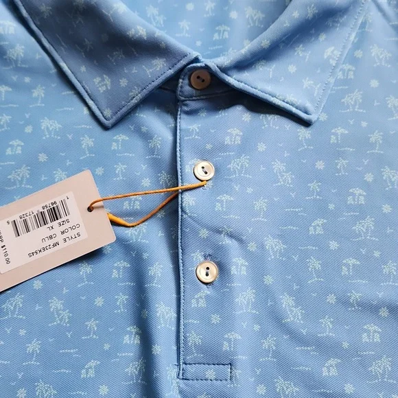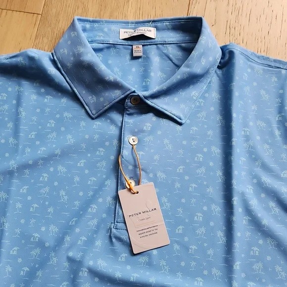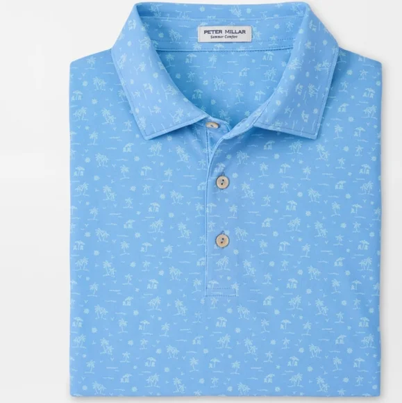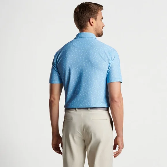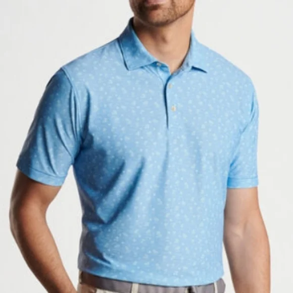 This Peter Millar performance mesh polo offers sharp style and technical performance that makes it a staple in any wardrobe. It’s constructed using a lightweight, moisture-wicking fabric that provides odor-resistance and four-way stretch. This polo features a custom-designed coastal-inspired print. Finished with a Sean self-fabric collar and three-button placket.DetailsMen's 94% polyester / 6% spandex poloSummer Comfort fabricationClassic FitFour-way stretch, moisture-wicking, easy-care benefits and odor-resistant propertiesSean self-fabric collar, three-button placketColor is Cottage Blue (CBLU)