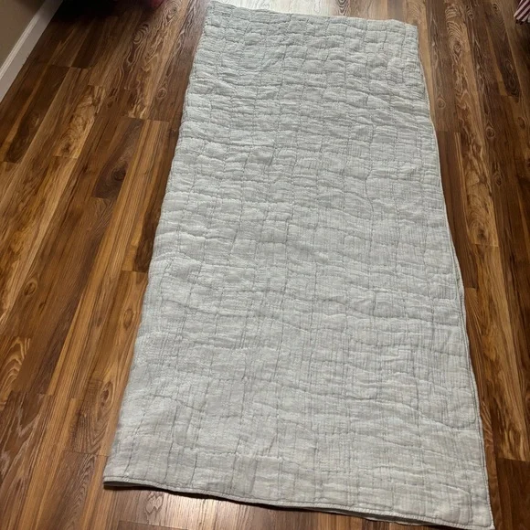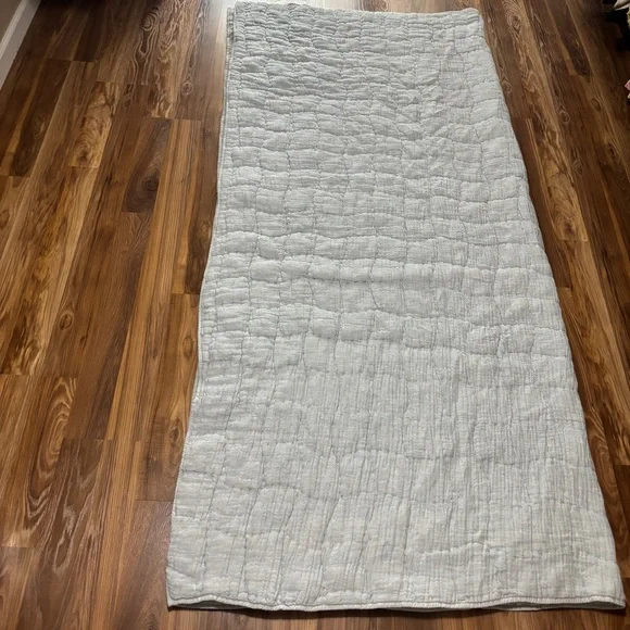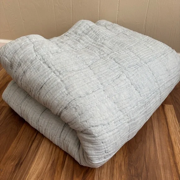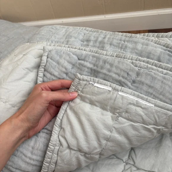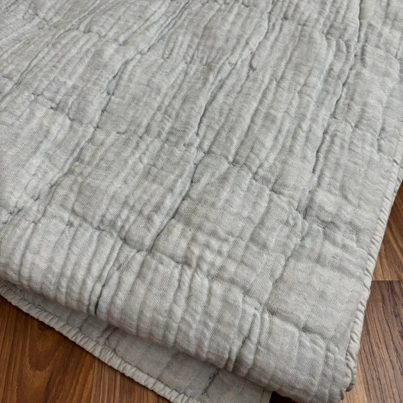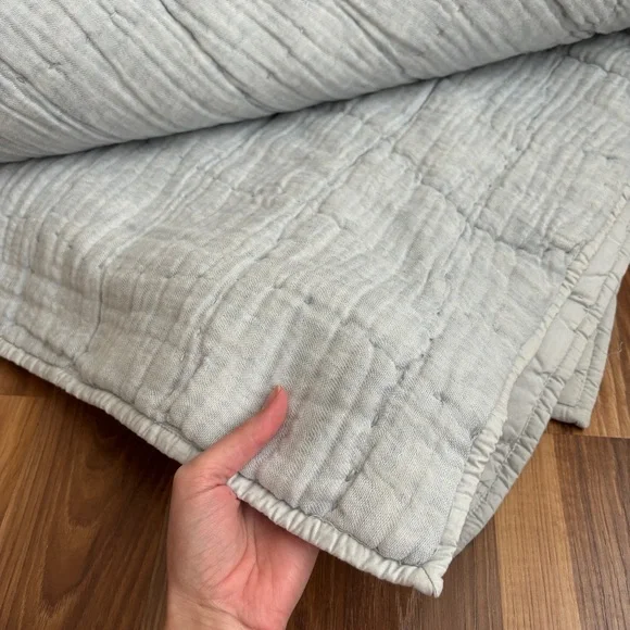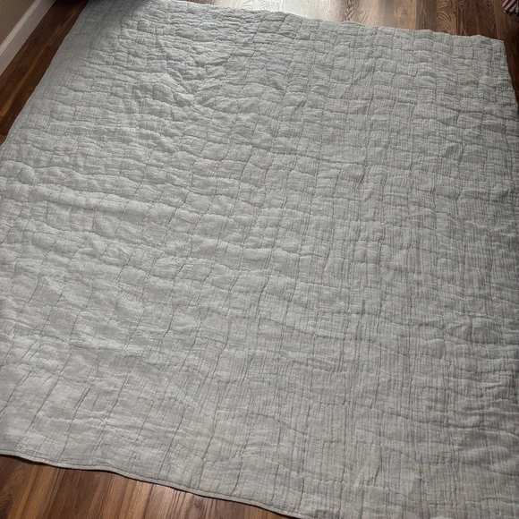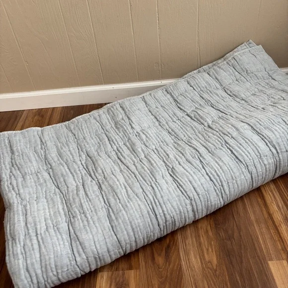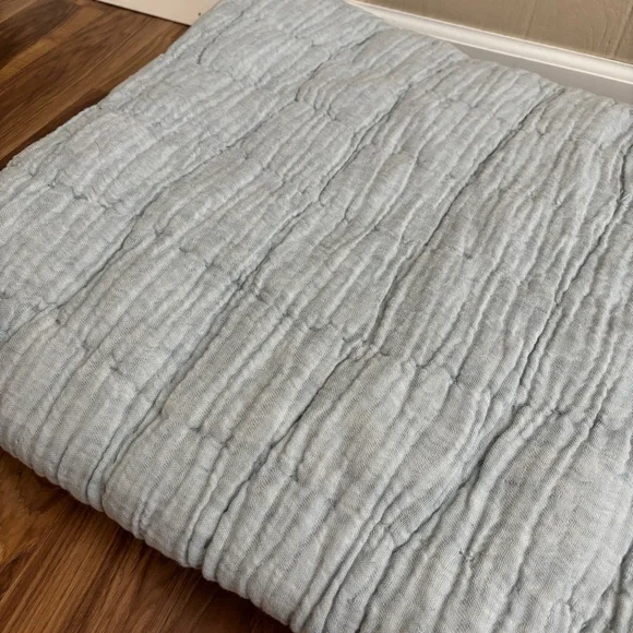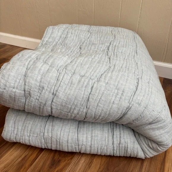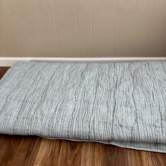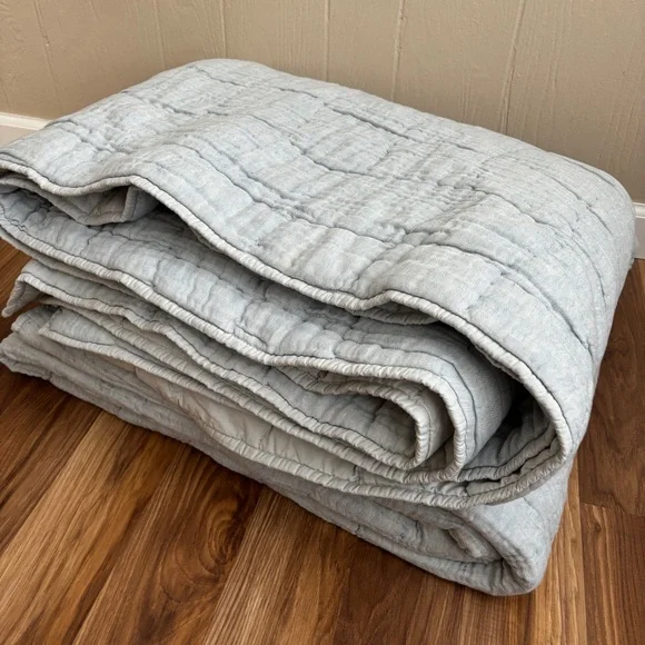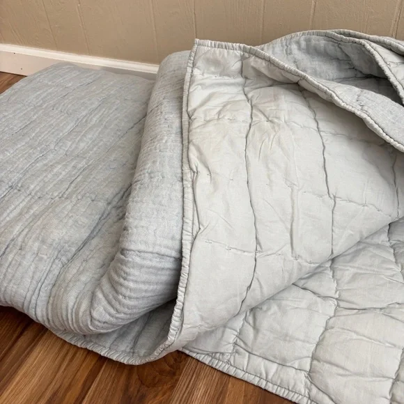 Pottery Barn Cloud Quilt in Chambray Full/QueenFront is hand-stitched from a linen and cotton blend. Filled with 100% polyester. Reverses to cotton.OEKO-TEX® STANDARD 100: tested against 1000+ harmful substances.CareMachine wash in cold water, gentle cycle.Use non-chlorine bleach when needed.Tumble dry on low.Excellent pre-owned condition. No notable flaws. Tags have been cut out.THIS ITEM CANNOT BE BUNDLED DUE TO WEIGHT, thank you :)