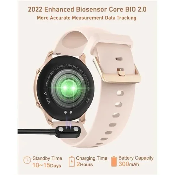 🧿⭐【Classic Round Face Watch, Best Charm Valentines Day Gifts】Featured with a 1.65-inch full touch HD LCD screen smartwatch, elegant and stylish; Built-in upgraded biosensors with 16sports modes, accurately monitoring heart rate, SPO2, sleep, pedometer, calories, help you better understand your health. (NO BP function)🧿⌚【More than 100+ Dials Syle】 You can customize the watch face with your own photos, such as your family, pet, etc; Two silicone bands as alternatives for your multi-wear life occasion or sports time, are the perfect valentines day gifts option for teens, girls, women, seniors🧿🏃【Fitness Watch Tracker for 16Sports Mode】 Accurately records all-day activities like steps, calories, and miles walked, also supports 16sports, such as walking, running, cycling, hiking, swimming, yoga, etc. The health smartwatch can monitor your sleep status and provide analysis on the APP [OnWear]🧿🙋【Fast SMS/CALL/APP Reminder When Tilt Wrist】 The fitness watch has various messages and calls notification, and remind you by vibrating, let you never miss each vital piece of information, also you can easily preview messages on watch, and no need to open the phone.🧿🏊【Designed with 3ATM Waterproof Rating】 This allows you have daily activities such as swimming in the pool, cold water shower, or washing hands with no worries. This health watch for android and IOS phones only takes 2 hours to full charge and can last used for 7-10 days or 15 days standby time.