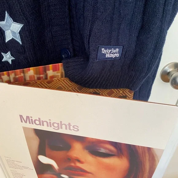 Taylor Swift Midnight Cardigan Stay cozy and stylish with the Royal Blue Star Midnight Cardigan Sweater. Featuring a deep navy color with charming star accents, this sweater is perfect for the swifties Cardigan never been wornand Album preowned album and good condition. Firm on price . Might be willing to sell separately