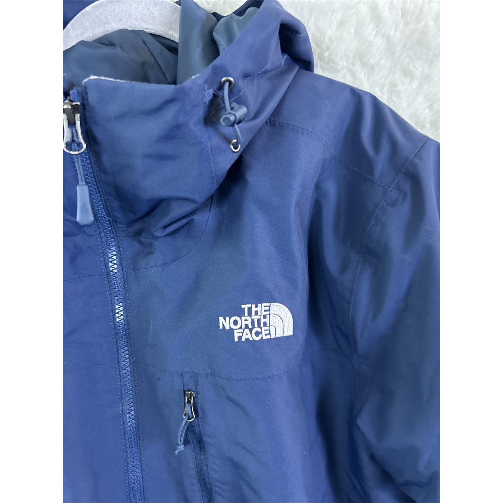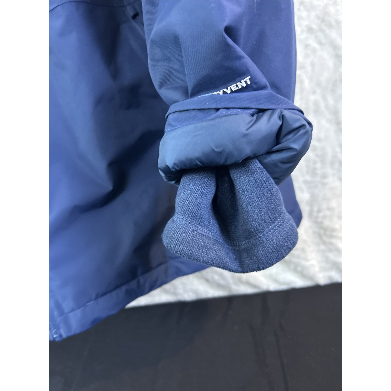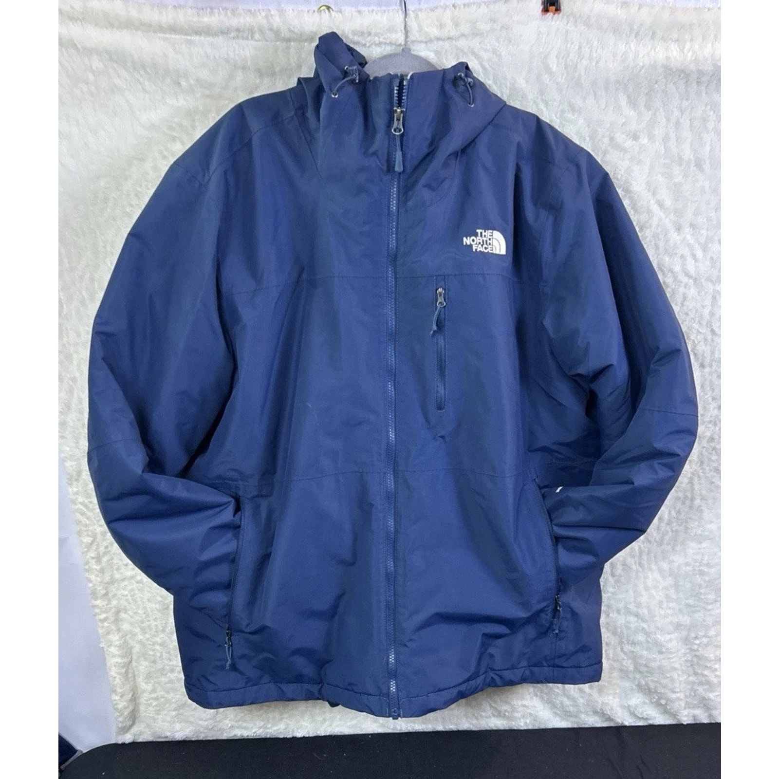 The North Face Winter Parka for men in size XL, featuring a weatherproof nylon outer shell with a zip-out inner fleece. This blue parka has a zip closure and is designed for the winter season, offering both style and functionality. Perfect for staying warm and protected from the wind during cold weather.