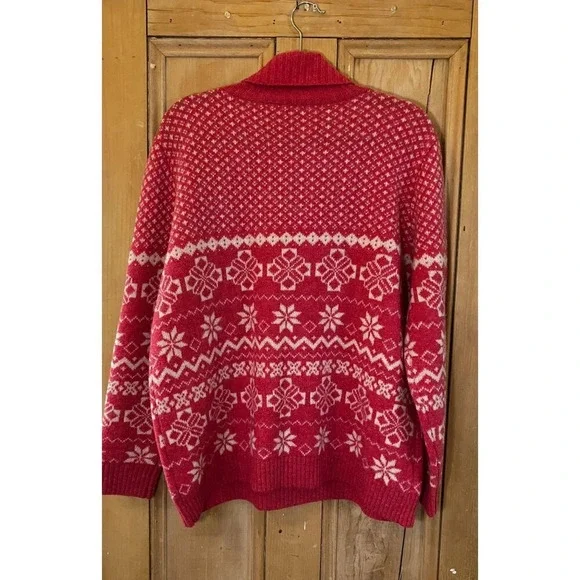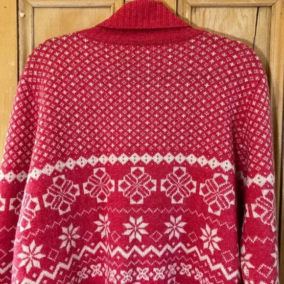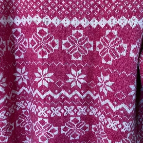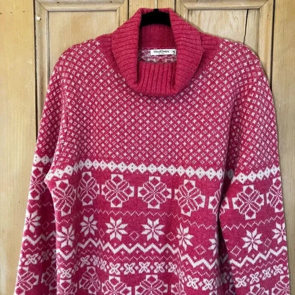 WoolOvers Womens Fair Isle Snowflake Turtleneck Sweater Sz. XL Pink White WT EXC