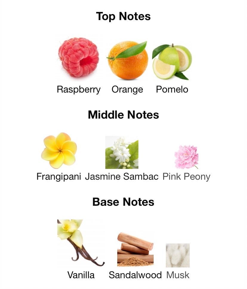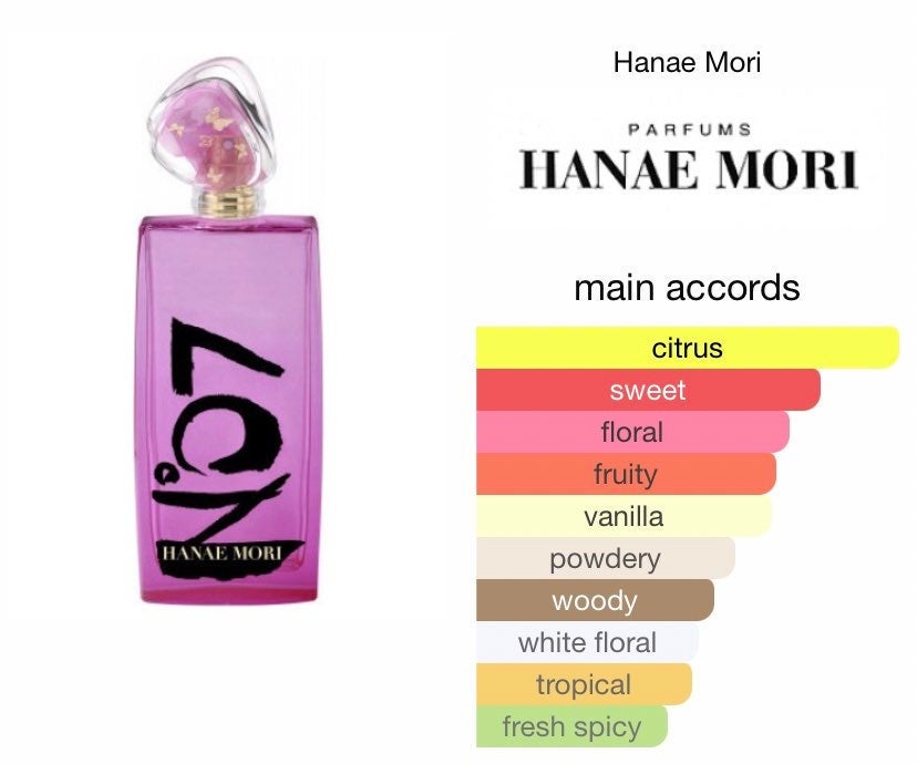 Top notes of the new fragrance Hanae Mori No7 brings us cheerful pomelo combined with passionate raspberry, along with orange marmalade sweet veil. A heart provides an exotic, floral bouquet of frangipani from Tahiti, pink peony and sambac jasmine from India, while base notes carry sensual musk, rich, creamy Indian sandalwood and frozen vanilla.