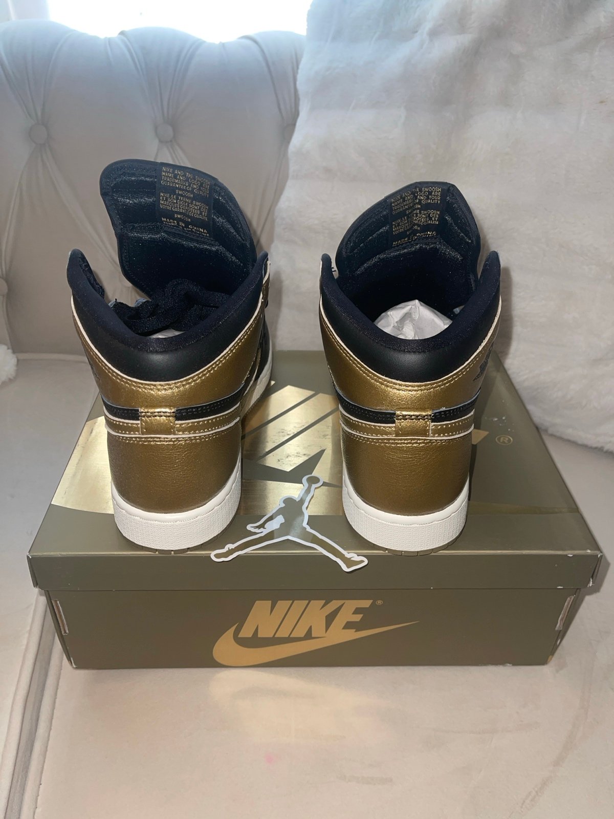 Fresh and bold, the Air Jordan 1 Retro High OG Black Metallic Gold sneaker comes with a hot color combo of black and gold. A sophisticated look to a heritage sneaker, this modern spin on the all-time favorite is the perfect tribute to the legendary baller.